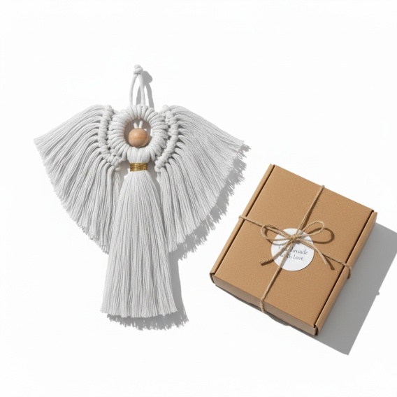 Aniołek makramowy łączy tę symbolikę z pięknem ręcznie wykonanego rękodzieła, tworząc ozdobę pełną znaczenia.